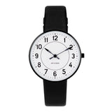 Arne Jacobsen, Station, sort rem og hvid skive, 40mm