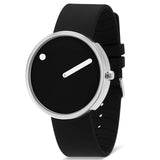 Picto armbåndsuret har en sort roterende urskive, sort silikonerem og et poleret stålspænde i et minimalistisk dansk design fra 1984. Med 45 mm kabinet i rustfrit stål, hærdet mineralglas og 5 ATM vandtæthed forener det funktion og æstetik. Det ikoniske ur med en prik og en streg viser tiden på sin helt egen måde – stilrent og ikonisk.