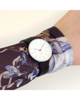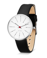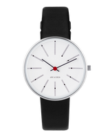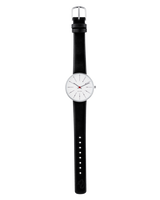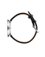 Solid urkasse i rustfrit stål med konkav urskive, hærdet dobbelt konveks M2-glas, læderrem i kalveskind med spænde i rustfrit stål.