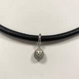 Vedhænget kan købes med eller uden halskæde (sølv 45 cm, forgyldt 42 cm, rhodineret 50 cm) eller læderarmbånd.