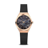 Det elegante ur kommer med en urskive i sort perlemor og rosa guld urkasse. Urkassen måler 5,2mm i højden og 29mm i diamater. Uret er vandresistent til 3bar.