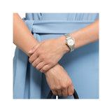 Dameuret kommer med en tofarvet rustfri stållænke. Det har datovisning, romertal og guld ur-krans som giver uret et elegant og feminint look. Uret måler 30mm i diameter og er vandresistent til 10bar.