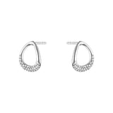 De elegante og sofistikerede ørestikker fra Georg Jensens Offspring kollektion kombinerer organiske former i rhodineret sterlingsølv med i alt 0,19 ct. funklende pavé indfattede diamanter. Designet er inspireret af naturens bløde konturer som fremhæver bærerens naturlige skønhed på en subtil måde.
