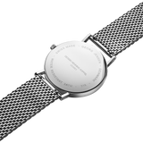 Koppel uret er 38 mm og med et Swiss Made urværk. Kommer med hvid urskive, dato, prikker frem for cifre på urskiven og en stål lænke, er Koppel uret en absolut klassiker.
