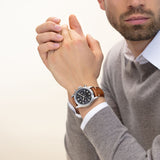 Uret kommer med safirglas, en 48 timers gangreserve og stopur.