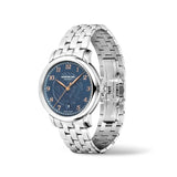 Uret kommer med en isblå skive, kobberfarvede viserer og tal samt stål kasse og lænke. Uret har en gangreserve på 48 timer.
