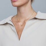 Denne smukke halskæde er fremstillet i 18 kt genanvendt guld, og forener elegance og luksus med sit vedhæng af tre gyldne perler og en 0,07 ct. brillantsleben diamant. Smykket udstråler både klassisk stil og moderne finesse, hvilket gør det sofistikeret, når det bæres alene, og uovertruffen i kombination med de matchende øreringe.