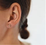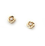 Små blomster-ørestikker i 14 karat hvidguld eller guld med en enkelt lille diamant i midten af blomsten i alt 0,02 ct.