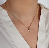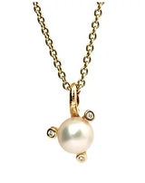 Twigs perlevedhænget er lavet i 14 karat guld, og har en ferskvandsperle i midten som bliver holdt af tre små diamanter 0.03 ct. TW / VS. Vedhænget kommer uden kæde.