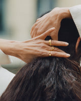 Guldringen fra Offspring 2025 kollektionen forener bløde, organiske former med funklende diamanter, der elegant fremhæver ringens bevægelse. Designet af Jacqueline Rabun for Offspring kollektionen – en hyldest til de dybe bånd, der binder os sammen.