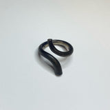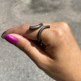 Sort rhodineret sølvring, et bånd som snor sig om fingeren.