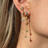 Moderne og stilfulde ørehængere i 18 karat forgyldt sterling sølv, prydet med en sammensætning af farvede og klare zirkoner. Dette skaber en glitrende effekt, hvorfra navnet Drop Bling passer godt til.
