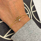Stilfuldt justerbart slangearmbånd i 18 kt forgyldt sterlingsølv og med en enkelt zirkonia sten.