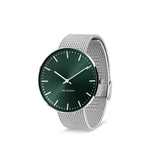 Flot og stilrent herreur, med grøn skive og mesh lænke. Urskiven måler 40 mm og har minimalistiske viserer og streger.